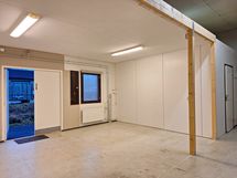 Tila on etuosasta avoin ja sisäkorkeus vaihtelee 2,5-3,5 metrin välillä (etuosassa matalampaa ja takaosassa korkeampaa). Avoimen tilan vieressä on toimistohuone pinta-alaltaan noin 11 m². Sisäänkäynnin oviaukko on leveä. Tilaan on vaihdettu suurempi, kahden metrin levyinen lastausovi (L1,6 m x K2,0m).