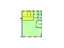 Porvoon Kevätkummussa on vuokrattavana työ- ja varastotila, jonka pinta-ala on 53 m². Tila on merkitty pohjakuvaan keltaisella värillä.