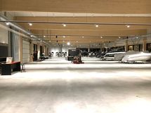 Samassa rakennuksessa on korjaamotila 400 m², johon käynti korkeiden nosto-ovien kautta.