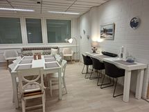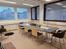 Keittiö/lounge sekä 12 hengen kokous/neuvottelutila ovat valmiiksi kalustettu. Neuvottelutilan käyttö varausten mukaan.