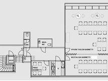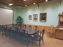 Pieniin ja suuriin tilaisuuksiin vuokrattavissa saman rappukäytävän varrelta tyylikäs ja persoonallinen koulutus-kokous- neuvottelutila ( max. 40 ihmistä). Tilassa kaksi isompaa liukuovella erotettavaa huonetta, HYVÄNMIELEN KABINETTI JA NOSTALGIA KABINETTI, sekä keittiö ja PIKKU KABINETTI. Hissi tai portaat. Neuvottelu/kokoustila on esteetön. Tehokas ilmastointi jäähdytyksellä. - Kiinteistön vuokralaisille tuntivuokra 35 € +alv.