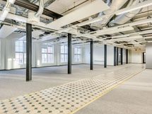 Näyttävä toimisto alkuperäisellä ja suojellulla lattialaatoituksella. Avokonttoria täydentää muutama huone, jotka toimivat niin neukkareina kuin hiljaisina tiloina. Näkymät avautuvat Tammerkoskelle sekä sisäpihalle. Tila voidaan yhdistää viereiseen 217 m2 toimistoon.