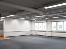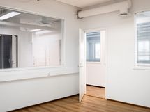 2. kerroksen toimistotila, jossa avotilaa, kaksi toimistoa, neuvottelutila, kaksi wc:tä ja keittokomero. Vuokra 3535 € kuukaudessa.