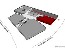 Ratinan kauppakeskuksen yhteydessä on pysäköintilaitos, josta on suora yhteys toimistotaloon.