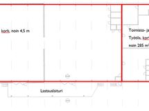 Hallitilaa noin 825 m2 ja toimisto- ja sosiaalitiloja sekä matalampaa työ- ja varastotilaa noin 285 m2.