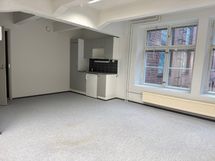 Tila on kooltaan 60m2. Tila sijaitsee 2. kerroksessa ja se koostuu avotilasta jonka yhteydessä on keittiönurkkaus, yhdestä erillisestä huoneesta ja wc-tilasta. Erillisestä huoneesta oma sisäänkäynti rappuun myös. Vaaleat maalatut seinät ja harmaa tekstiilipalamatto. Palamatto tullaan uusimaan seuraavalle vuokralaiselle ja sen väriin voi vaikuttaa. Akustiikkalevyt katossa.