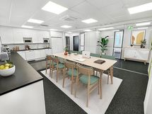 Tämä 453- 675 m² toimisto sijaitsee kiinteistön 3. kerroksessa, huonejako voidaan muokata käyttäjän tarpeiden mukaan. Toimistossa on erikokoisia huoneita sekä omat keittiö- ja wc-tilat. Toimitila on esimerkiksi jaettavissa kahteen eri käyttöön: julkiseen ja ei-julkiseen osaan ovella, jossa on kulunvalvonta. Puolijulkisessa osassa on 3 neuvottelutilaa (5-10 henkeä), wc ja käynti kahviotilaan. Ei-julkisella puolella on kaksi työhuonetta, avotyötilaa, puhelinhuone, varasto, wc-tilat sekä iso IT-tila. Avotilaan voidaan toteuttaa eri kokoisia huoneita, käyttäjän tarpeiden mukaan.