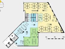 Vuokrattavissa ensimmäisessä kerroksessa sijaitseva toimistotila. Tilassa voidaan tehdä muutoksia asiakkaan tarpeiden mukaan, ja pohjakuva tarjoaa esimerkin mahdollisesta tilasovituksesta. Tila on muuntojoustavaa, ja siinä on jäähdytys sekä energiatehokas LED-valaistus.
