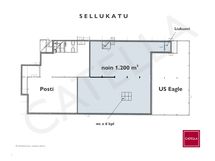 Avaraa yhtenäistä tilaa noin 1.200 m2. Tilan vapaa korkeus on noin 3,5 - 3,7 m lattiasta kantavaan kattopalkkiin. Kattopalkkien välissä korkeutta on selvästi enemmän.