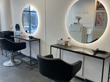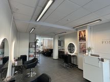 HUOM! Kuvassa näkyvät tyylikkäät peilipisteet ja kampaamotuolit sekä vastaanotto- ja odotustilan kalusteet ja tuotemyyntihyllyt eivät sisälly. Vuokraan lisätään arvonlisävero.
