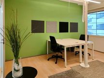 Ilmoituksen sisäkuvat ovat yleiskuvia toimistohotellista.
