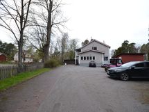 Julkinen liikenne kulkee edestä ja kiinteistön pihalla on ilmaista paikoitustilaa.