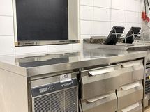 Tällä hetkellä keittiön varusteluun kuuluu fritti ja parilla. Lisäksi käytössä on astianpesukone, baaritiski ja vetarit.