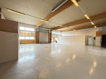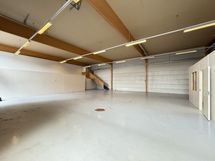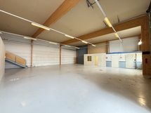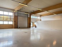 Hallitilan osuus tiloista on noin 200 m2. Hallin korkeus on noin 4,5 metriä ja tilaan johtaa 3,5 x 3,8 m nosto-ovi. Hallissa on lattiakaivo.