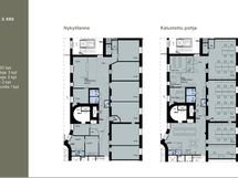 Tämä 302 m² toimistotila sijaitsee B-portaan 3. kerroksessa. Toimisto on huoneellinen, ja siihen kuuluvat omat keittiö-, tauko- ja wc-tilat.