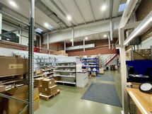 Tämä tukkuliikkeenä toiminut liiketila koostuu yhdestä isosta 200 m2 kokoisesta avotilasta ja noin 25 m2 toimisto- ja taukotilasta. Suuri huonekorkeus mahdollistaa varastohyllyjen käytön, jolloin tila saadaan neliötehokkaasti käyttöön. Tämä ilmava ja avara kokonaisuus sijaitsee vain kivenheiton päässä Kehätiestä. Vapaa korkeus 5,1 m, osittain yli 6 m.