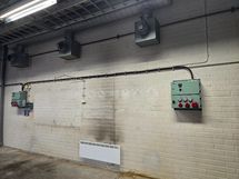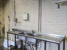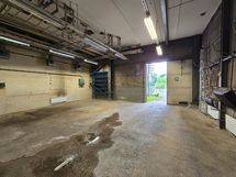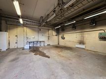 Tilassa on vesipiste ja suuret avattavat ovet, jotka helpottavat sisäänajoa ja tavarankäsittelyä.