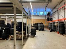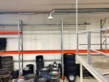 Tilassa on tilava ja siisti parvi, joka on ollut renkaiden varastointikäytössä. Se voidaan kevyillä muutoksilla muuttaa vaikkapa toimistotilaksi.