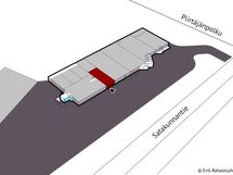 Talon edustalla on kookas, viereisen kiinteistön kanssa yhteinen pysäköintialue. Paljon asiakaspysäköintipaikkoja.