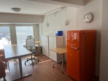 Tila koostuu avotilasta, pienestä taukotilasta ja wc:stä.