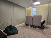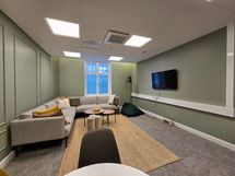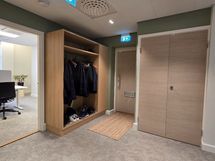 Toimistossa on kaksi wc-tilaa, joissa molemmissa on suihku. Tilava ja hyvin varusteltu keittiö palvelee henkilöstön ja vieraiden tarpeita. Huoneistossa on myös kaksi erillistä sisäänkäyntiä, mikä lisää tilan muunneltavuutta ja käytännöllisyyttä.