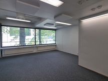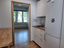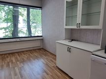 Tila koostuu muutamasta erikokoisesta työhuoneista, keittiöstä ja wc:stä.