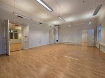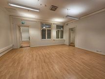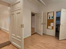 Toimisto koostuu useammasta tilavasta huoneesta, jotka soveltuvat työhuoneiksi tai neuvottelutiloiksi.
