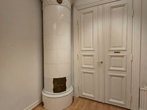 Tilassa on lisäksi keittiö, kaksi wc:tä sekä suihku. Yksityiskohtina tilassa on kauniit kakluunit. Kokonaisuus on valoisa ja selkeä.