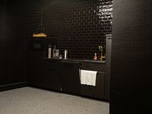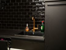 Tilaa isolle ruokapöydälle, Laminaattitasot, Astianpesukone, Jääkaappi