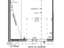 Vuokrattava tila koostuu toistaiseksi yhdestä avotilasta 45 m2, johon on 3,4 x 3,4 metrinen nosto-ovi erillisellä käyntiovella.