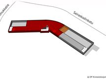 Rakennuksen pihalla on yli 200 pysäköintipaikkaa.
