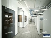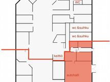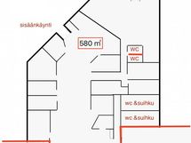 Katutason tila on jaettu kahteen osaan väliseinällä mutta seinä on mahdollista poistaa. Koko kerroksen pinta-ala on 1080 m2. 580 m2 - kaksi sisäänkäyntiä - 10 eri kokoista työhuonetta - avotilaa - avotoimistoa - 2 pukuhuonetta jossa suihkut ja wc 480 m2 - enimmäkseen avotilaa - 4 kpl työhuoneita - neuvotteluhuone - keittiövaraus Tila on mahdollista vuokrata osissa tai kokonaan.