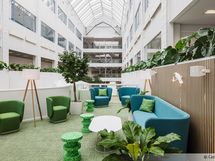 Auditorio, henkilöstöravintola, vuokrattavia neuvottelutiloja, kuntosali, vastaanotto, sauna