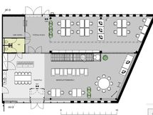 Tämä tila on kooltaan 508m2 ja se jakautuu kiinteistön 1. ja 2. kerrokseen. Toimiston pinta-alaan lisätään vielä 50m2 jyvitykset eli osuus yhteiskäyttöalueista.