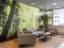 Henkilöstöravintola, vuokrattavia neuvottelutiloja, pysäköintihalli / -katos