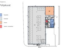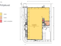 Lämmin huoneala n. 1 550 m² (vapaa korkeus 6–8 m) + varasto n. 80 m².
