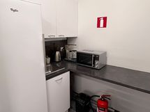 Valoisa ja avara tila toimii hyvin myymälä tai näyttelytilana. Tilassa on pieni keittiö ja wc.