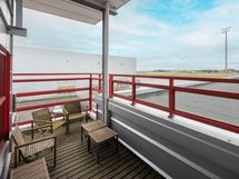 Kerroksen kruunaa 80 m²:n sauna- ja kokoustilat, joiden oleskelutilasta avautuu vaikuttava näkymä suoraan kiitotielle – täydellinen paikka edustamiseen tai henkilöstön virkistymiseen. Samassa rakennuksessa on vuokrattavissa myös logistiikka- ja varastotilaa, jotka sijaitsevat ensimmäisessä kerroksessa. Näihin tiloihin on helppo järjestää perinteisen logistiikan lisäksi myös lentorahtitoiminnot, sillä rakennuksen toinen seinä on kiinni asematasossa.
